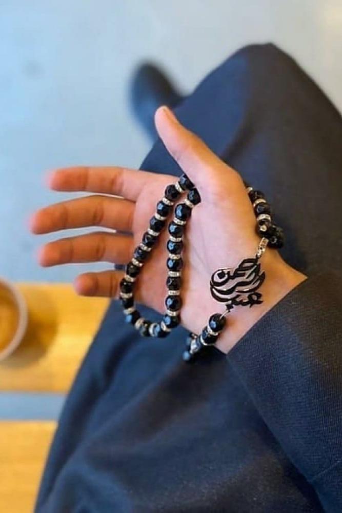 سبحة بالاسم راقية متوفرة باللون الأسود المتداخل مع اللون الذهبي