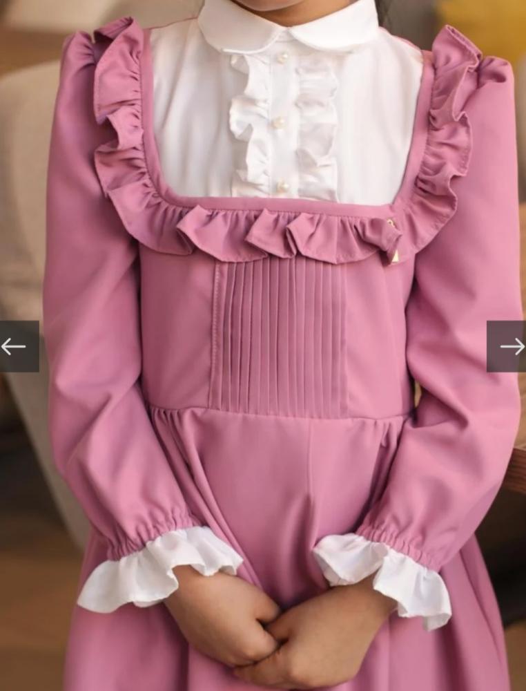 مريول ابتدائي بتصميم عصري وأنيق يدمج بين الأناقة والراحة يتميز بكشكشة ناعمة على الصدر ولأكمام وخامه كريب خفيفة ومريحة للحركة اليومية
